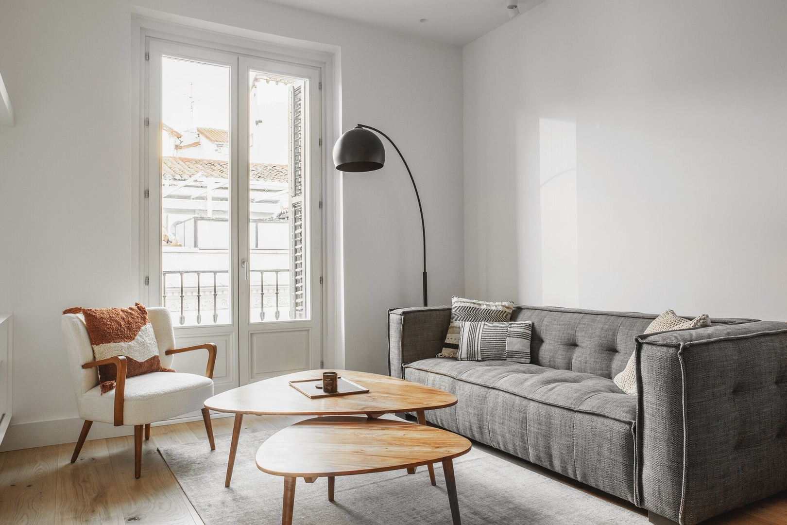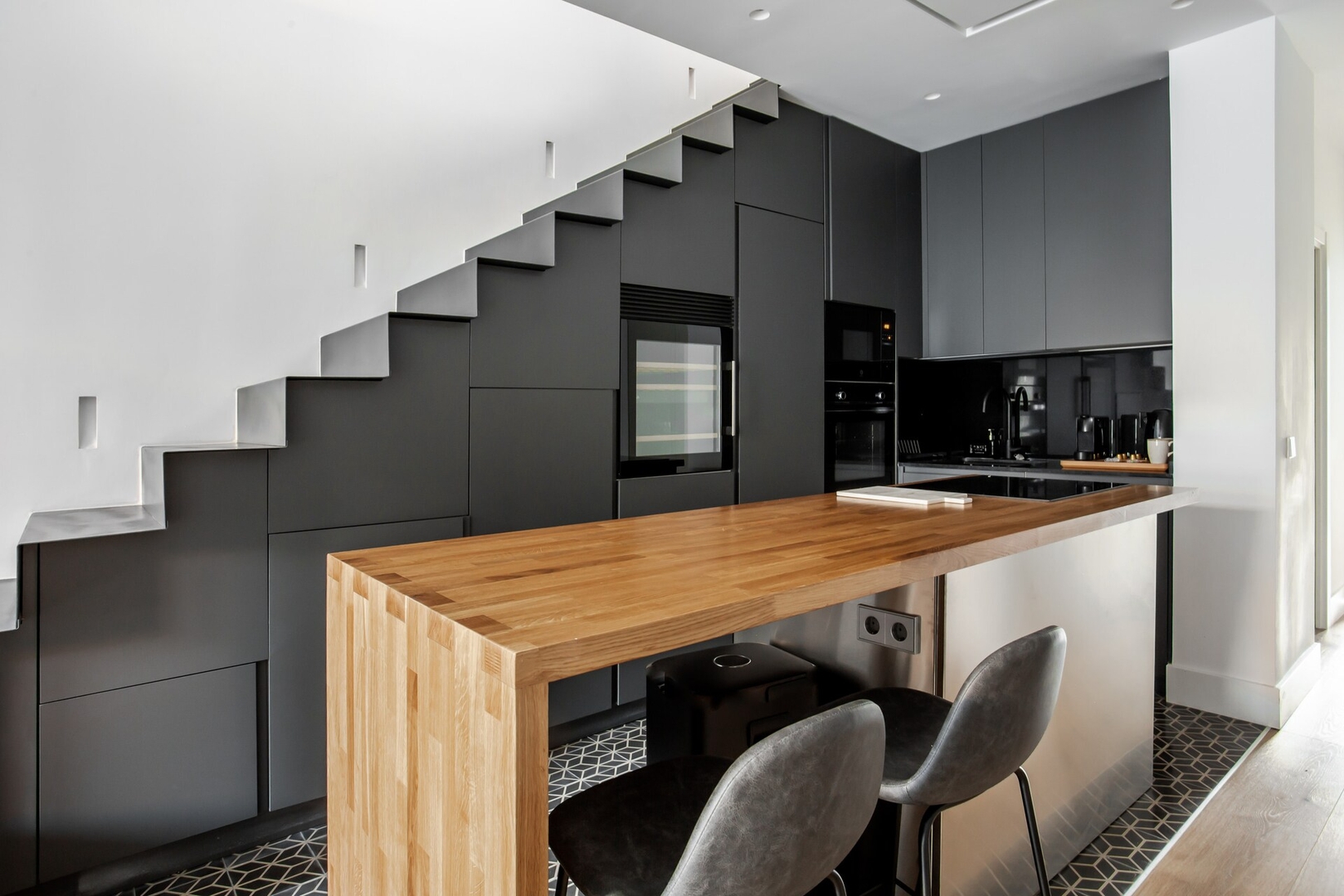 Este moderno alojamiento de dos plantas se encuentra en el último piso de un edificio de estilo clásico en uno de los barrios más codiciados de Madrid como lo es Justicia. Quedará deslumbrado con sus acabados y luminosidad. Cocina totalmente equipada, 2 habitaciones con camas de 160x200 y una de 140x190, 2 baños completos y una espectacular vista del barrio desde la ventana del salón.