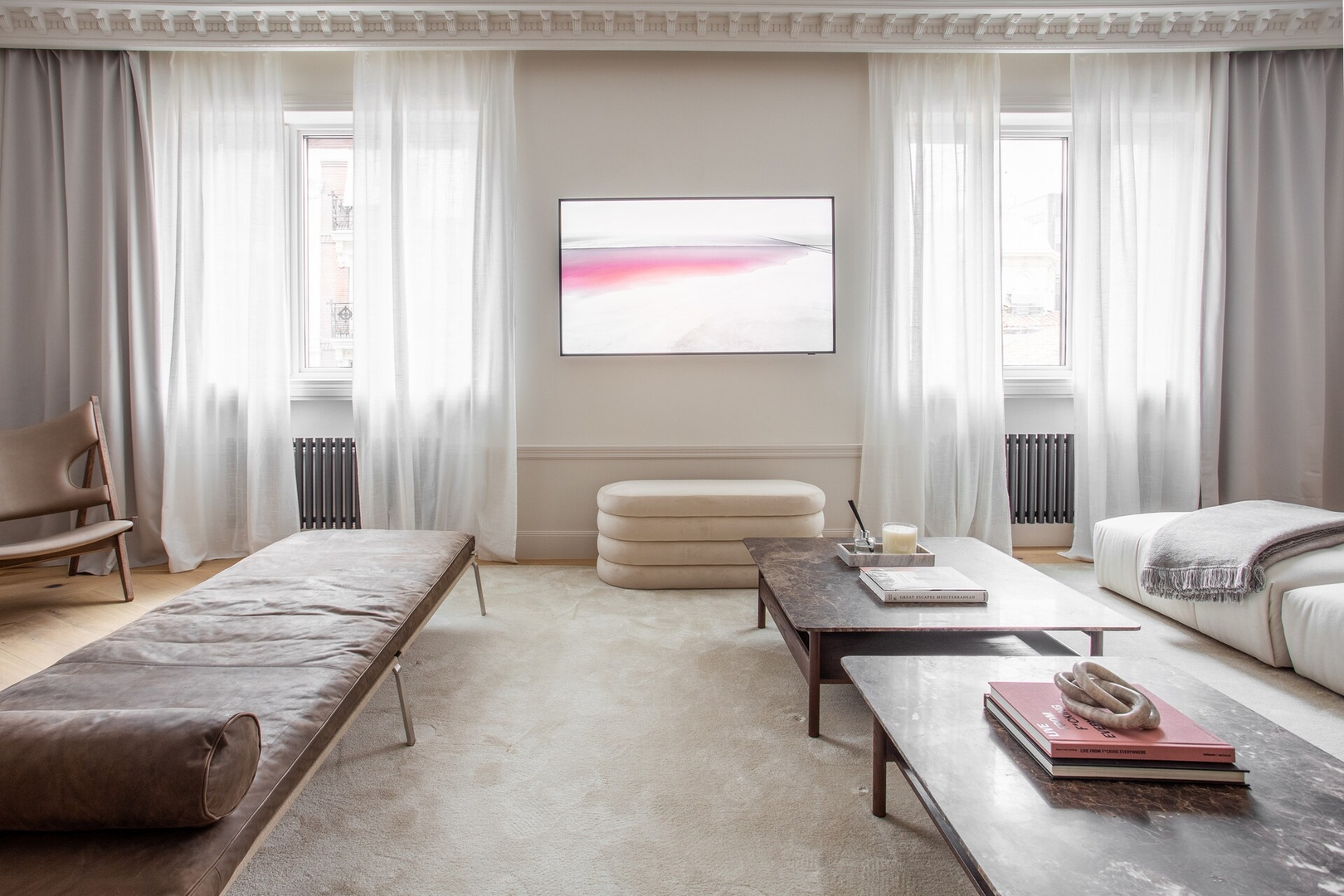Situado en el mejor barrio de la capital de Madrid, este amplio apartamento es perfecto para alojar hasta 6 huéspedes. El alojamiento se distribuye en un amplio salón- comedor, con dos salas de estar diferenciadas, con gran luminosidad gracias a sus ventanales a la C/ Claudio Coello. La cocina, de concepto abierto esta formada por una isla a modo de barra y electrodomésticos de ultima generación. El resto se compone de 3 dormitorios dobles, todos ellos con baño privado, y un baño de cortesía.