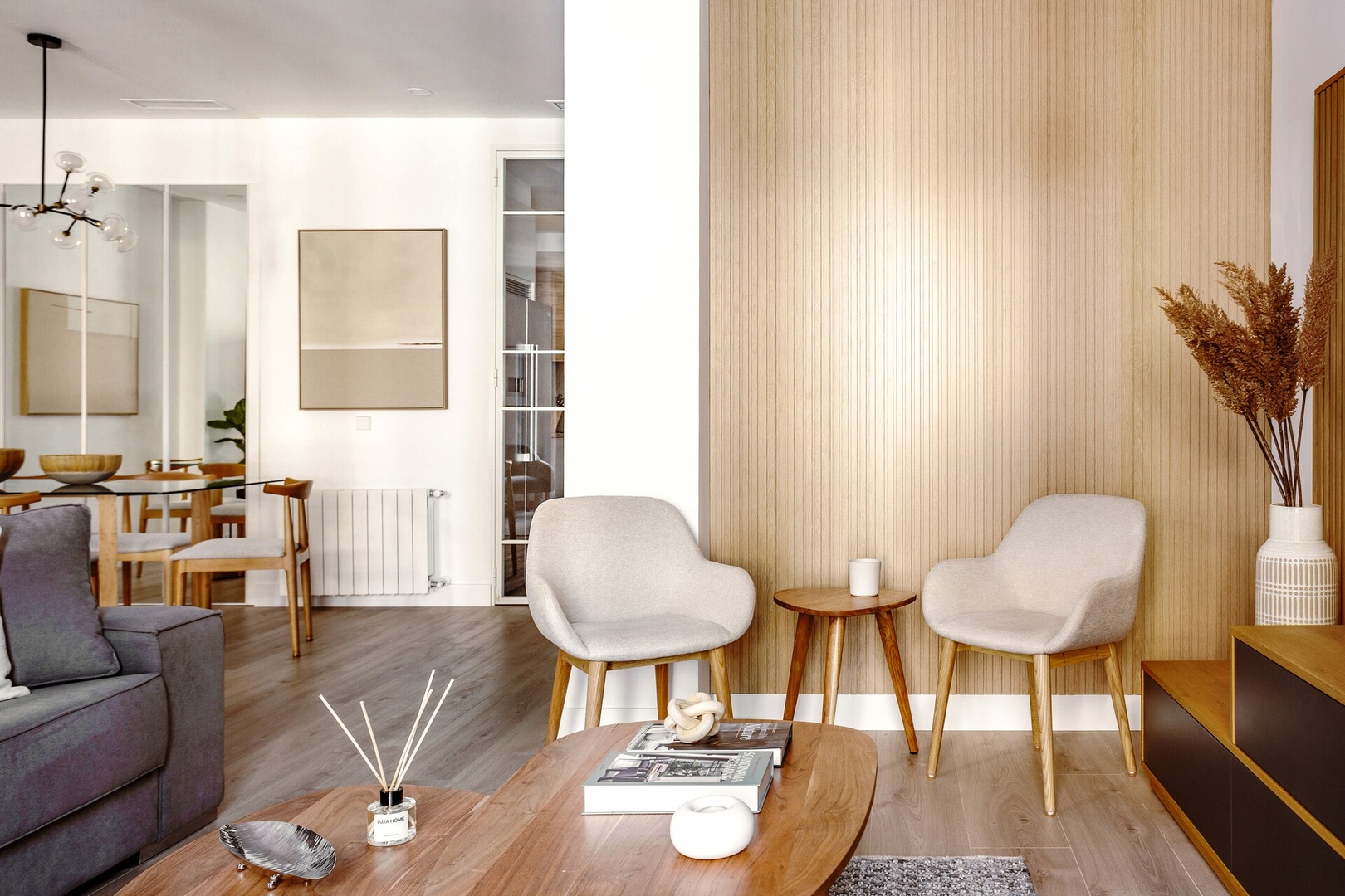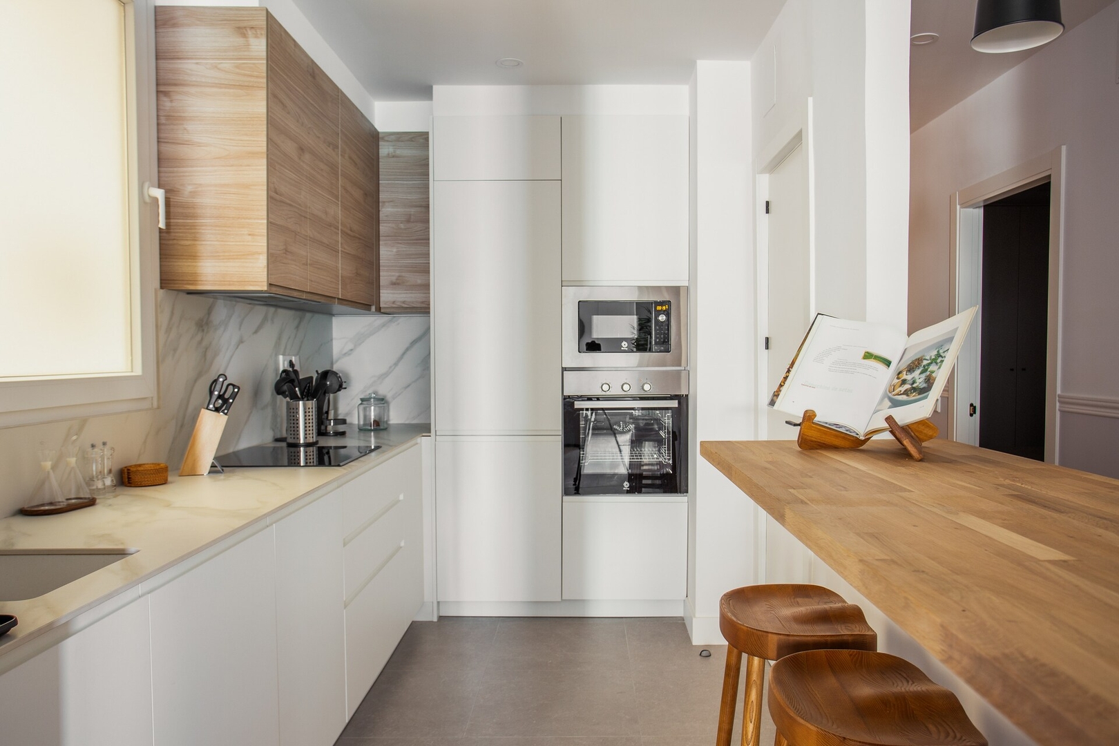Este amplio y luminoso apartamento destaca por sus balcones con vistas a la calle Padilla que iluminan el salón-comedor, con dos zonas de estar y comedor para seis personas. Dispone de tres dormitorios dobles, dos con baño en suite, y uno individual. La cocina semi-independiente está equipada con electrodomésticos y amenities, conectada al comedor por puertas de cristal y con una barra de desayuno. Los dormitorios cuentan con armarios empotrados, garantizando comodidad y funcionalidad.
