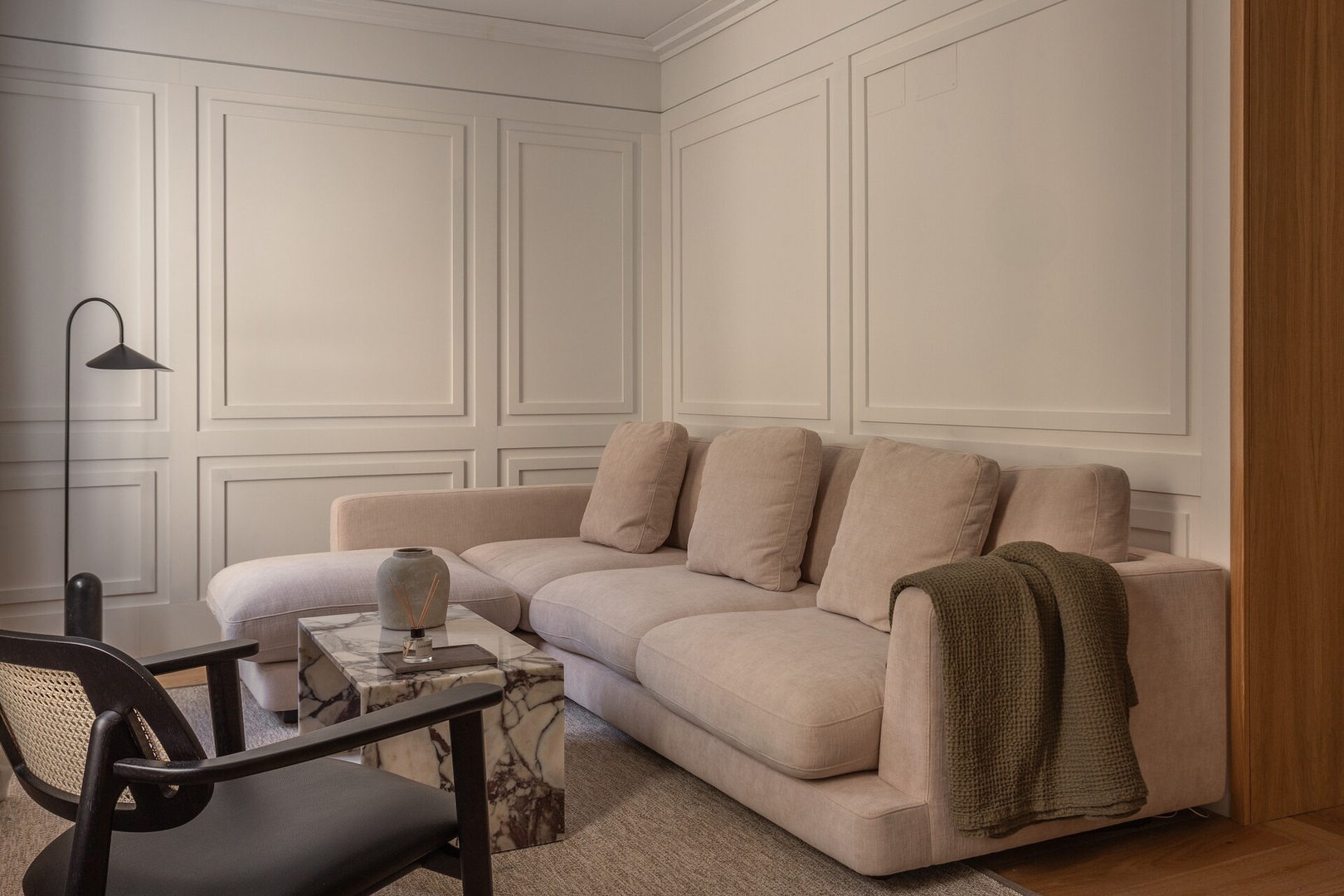 Este elegante apartamento en el centro de Madrid ofrece un refugio de paz y confort. Dispone de dos dormitorios dobles, el principal con cama King y vistas al jardín, y otro con dos camas individuales. Su diseño abierto maximiza la luz y el espacio, con una sala acogedora y cocina equipada. Destaca por su jardín privado con piscina, zonas al aire libre y gimnasio, combinando ubicación privilegiada con tranquilidad.